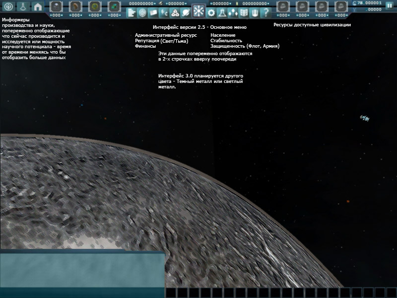 В интерфейсе 2.5 прототипа компьютерной игры про космос Xeno уже нет самых мелких элементов которые пробовались ранее, оставив только средние и крупные,