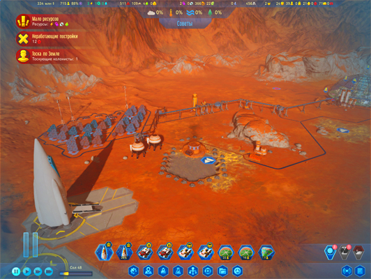 сюрьпризов с крахом колонии на раннем этапе небудет. Изучая технологии, можно открыть автоматизированный