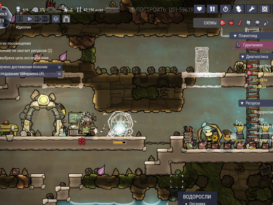 Не стоит усиленно направлять Дупликантов на повышение навыков, пока персонал не получит аттестации он будет довольствоваться простой едой и жилищем, заставив выучить новые способности требования к уровню обеспечения возрастут - потребуется более лучшая еда, без этого возрастет стресс и колонисты перестанут выполнять поручения. В игровой вселенной находится сразу несколько астероидов, начав на одном из них можно расширяться и изучать другие астероиды, но ненужно забывать про оружие, в этой игре про выживание в космосе два способа перелетать между астероидами - ракеты и телепортация, в настройках перед стартом мира можно отключить телепорт и останется только способ путешествий через космос.